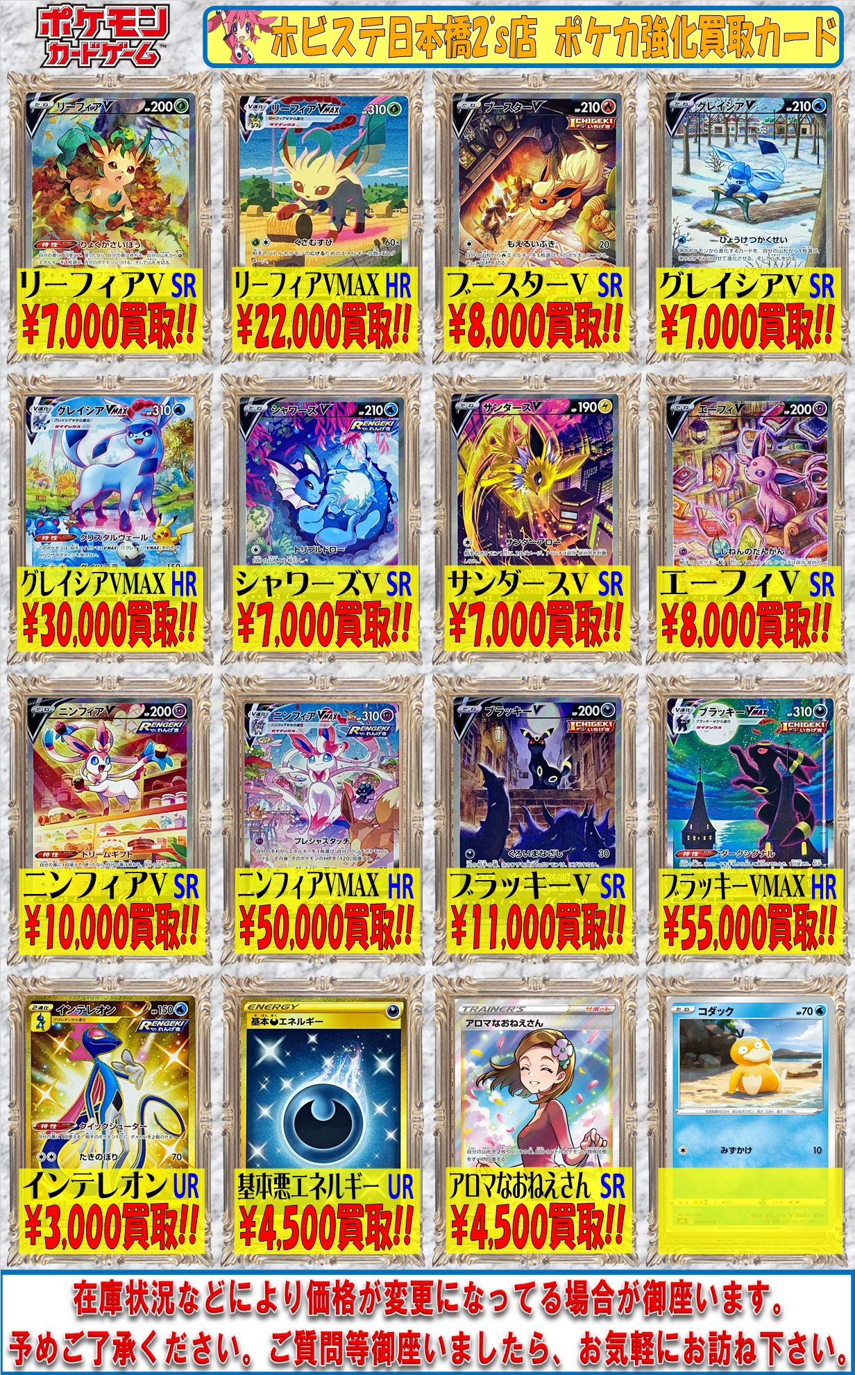 ブラッキーブイマックス買取価格-販売ビッグバンミッション 1弾/2弾/3弾 シングルカード 価格更新致しました! 販売ぱれっと 10 シングルカード 在庫入荷致しました! 販売「春日&ネイ」特集開催中強化拡張パック「イーブイヒーローズ」 ポケカHR ブラッキーVMAX 4月8日 (金)更新!10円→1300円 (商品状態・キズなし買取) 美品のみ強化買取中 強化買取価格 1,300円 残り: 4点
